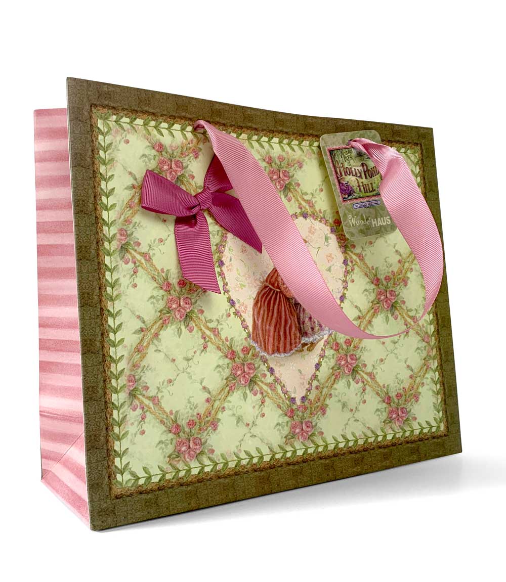 Kleine Geschenke, schön verpackt.Das geht auch ohne Geschenkpapier. Zu der exklusiven handgefertigten Papiertasche „Für Dich“ gehören eine dekorative Schleife und Kordeln aus Satin. Die Tasche ist elegant matt laminiert und mit Glitzerelementen veredelt. Sie beschert dem Beschenkten eine fröhliche Frühjahrslaune schon bevor das Geschenk ausgepackt wird. Durch ihre Langlebigkeit ist die Tasche sehr praktisch und kann mehrmals benutzt werden.- Dekorative Kordeln aus Satin