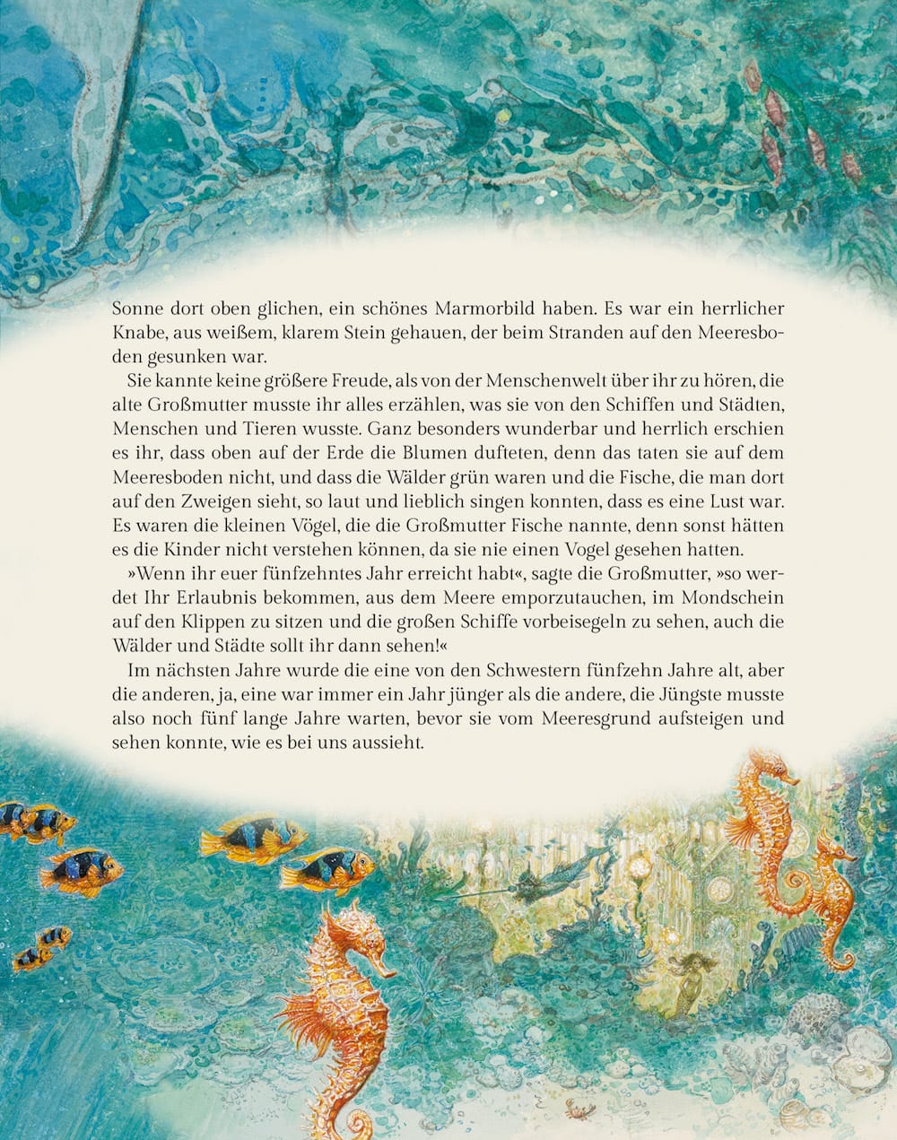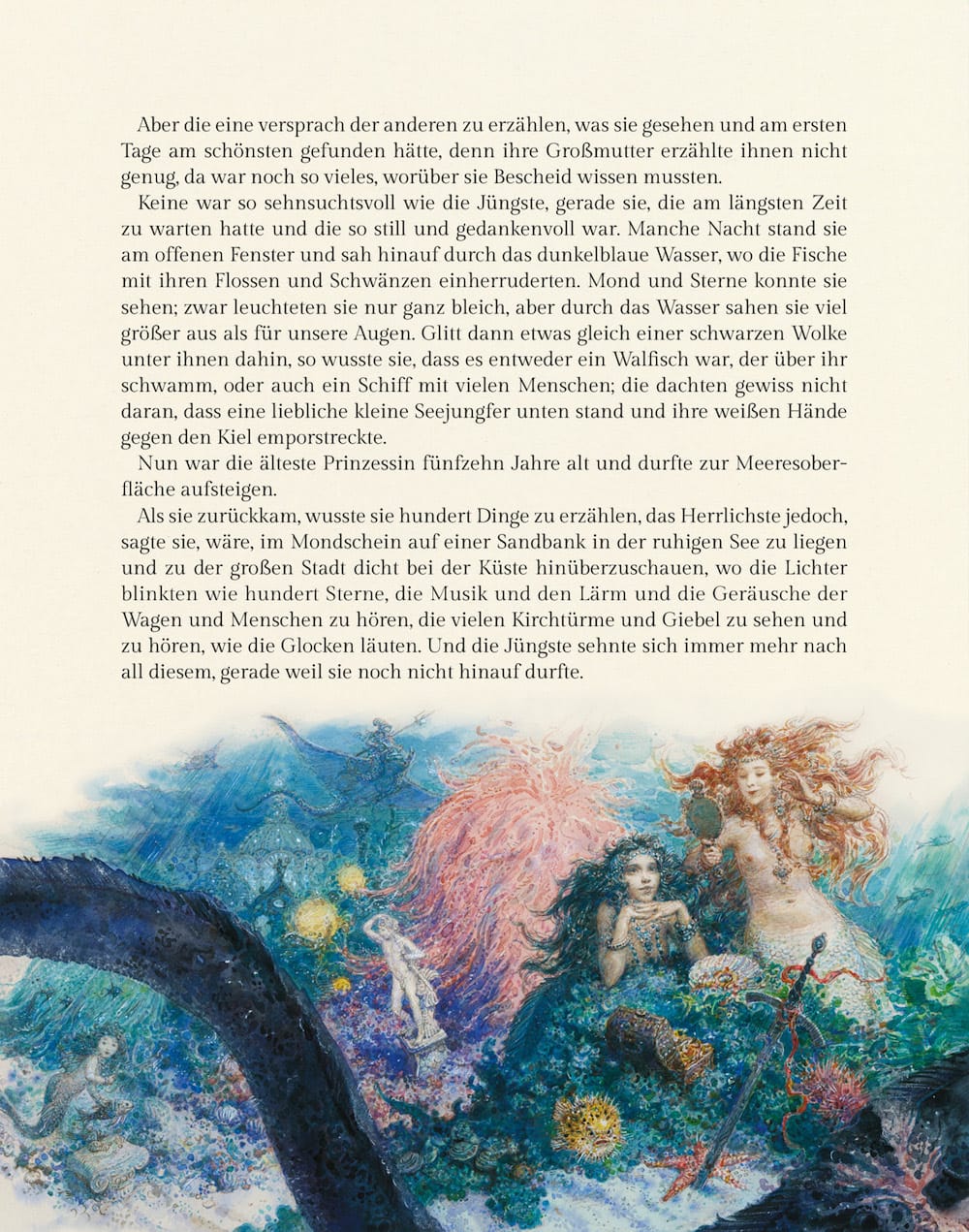 Die magischen Illustrationen für Die kleine Meerjungfrau stammen von dem berühmten Künstler aus St. Petersburg, Anton Lomaev. Das Buch wurde mit dem Preis "Interpresscon" für die besten Illustrationen ausgezeichnet.