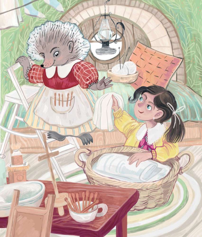 Aufräumen mit Spaß Lucie ist ein liebes Mädchen. Doch verliert sie immer ihre Taschentücher! Auf der Suche entdeckt sie eine kleine versteckte Hütte am Berg. Sie klopft an die winzige Tür und trifft auf eine Frau. Frau Winni Wisch-Wasch wäscht und bügelt winzige Sachen, summt witzige Lieder und kocht den aromatischsten Tee. Doch wer ist diese geheimnisvolle Wäscherin und warum ragen Stacheln aus ihrer Haube? Vielleicht ist sie doch nicht ganz das, was sie zu sein scheint. Diese zeitlose Geschichte ist eine Hommage an den Spaß und die Herausforderungen im Alltag. Ein Buch, das Kinderherzen zum Lachen bringt und die Fantasie sprudeln lässt – sogar beim Aufräumen! Liebevoll neu gezeichnet von Natalie Grebtsova, deren moderner grafischer Stil den Charme und den Humor der Geschichte widerspiegelt.