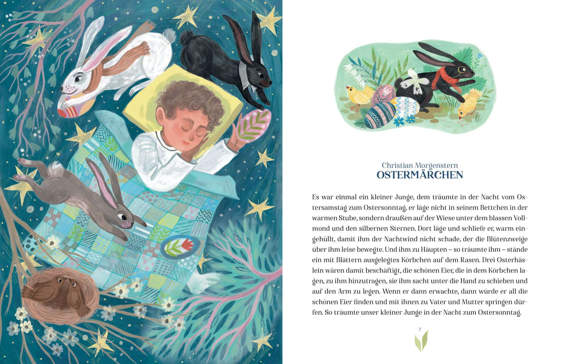 Den Frühling spüren! Ostern: Die Natur erwacht aus ihrem Winterschlaf, alles leuchtet in bunten Farben, Vögel singen und die Luft ist voll froher Erwartung – eine märchenhafte Welt erblüht. Vor allem für Kinder ist Ostern besonders aufregend, denn sie freuen sich auf den Frühling und den Osterhasen, der ihnen die bunten Ostereier versteckt. Um die Vorfreude darauf zu steigern, gibt es jetzt diese einmalige Sammlung. Neben bereits bekannten Klassikern der Brüder Grimm oder Christian Morgenstern gibt es darin auch weniger bekannte Ostermärchen aus aller Welt. Zusammen mit ihren fröhlich bunten Illustrationen vermitteln sie echte Frühlingsstimmung und eignen sich perfekt dafür, die Osterzeit in ein märchenhaftes und warmes Licht zu tauchen.